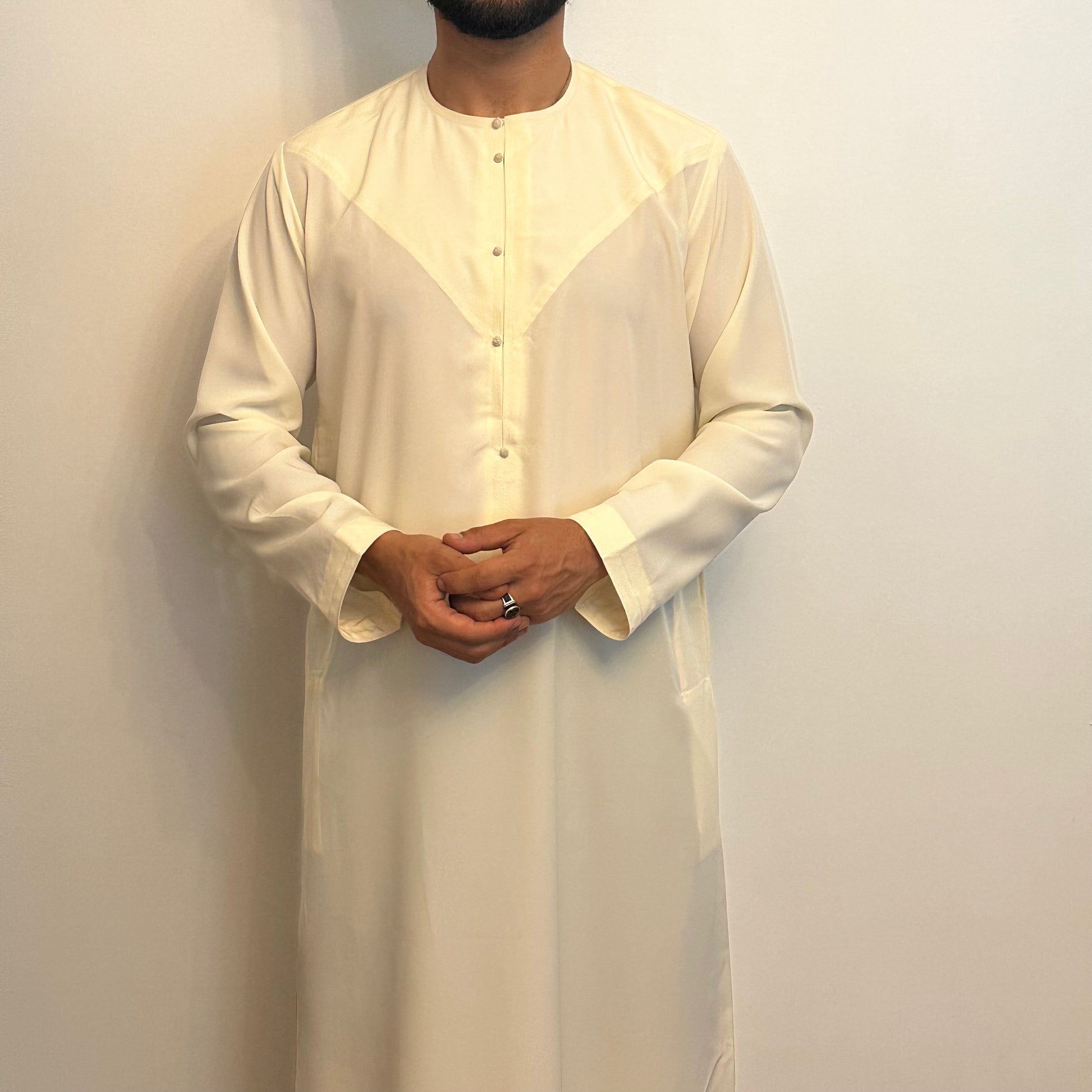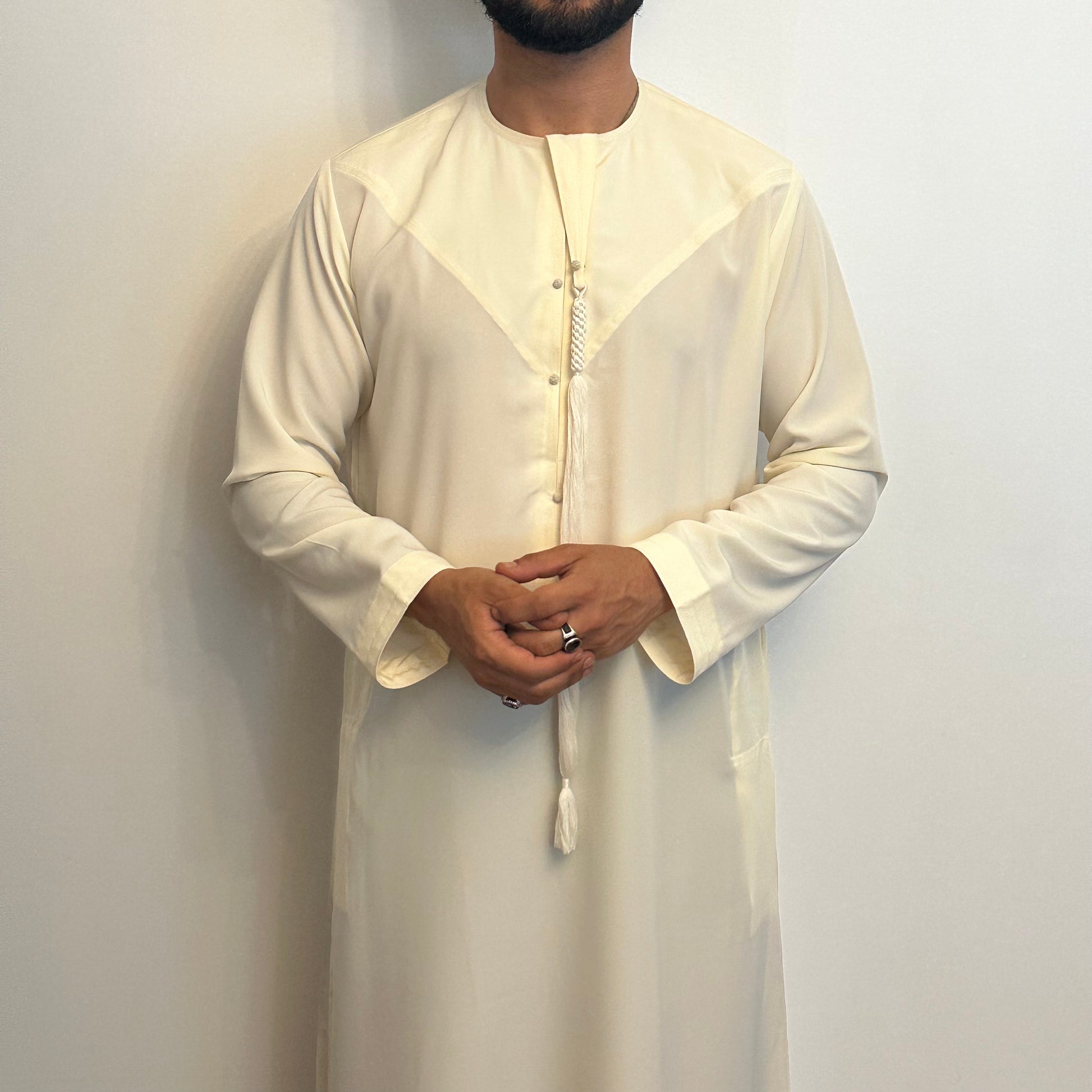 Matte cream Emirati thobe with detachable tassel